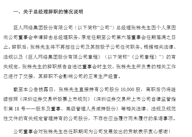 2025年10月28日,巨人网络披露总经理辞职暨聘任总经理的公告。公司总经理张栋因个人原因向公司董事会申请辞去总经理职务。辞职后,张栋将不再担任公司及其控股子公司任何职务。同时,公司聘任刘伟为公司总经理。